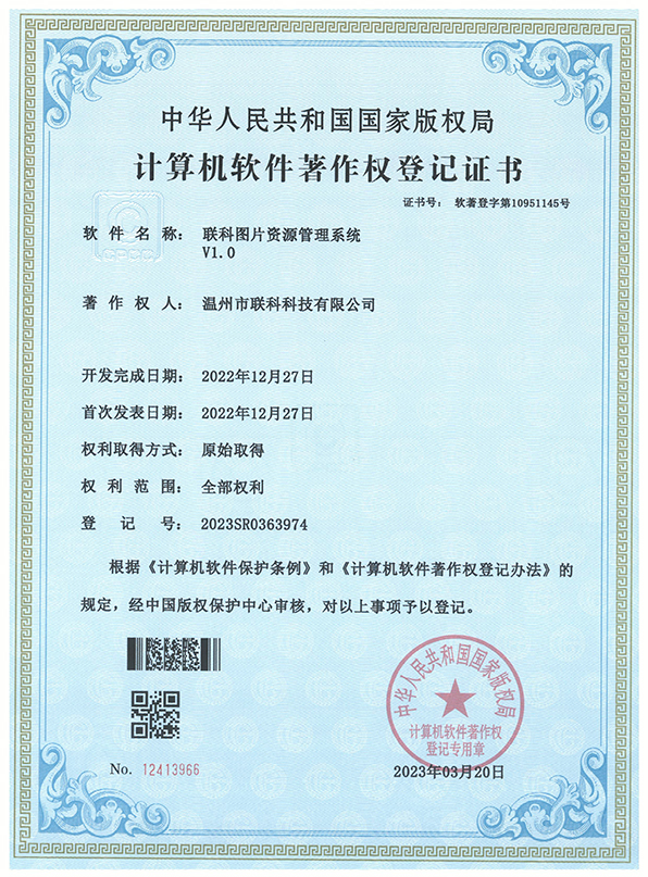 聯科圖片資源管理系統V1.0登記證書(2022R11L2489419)