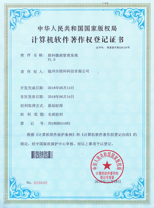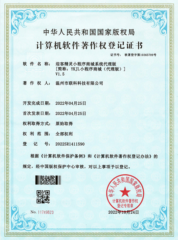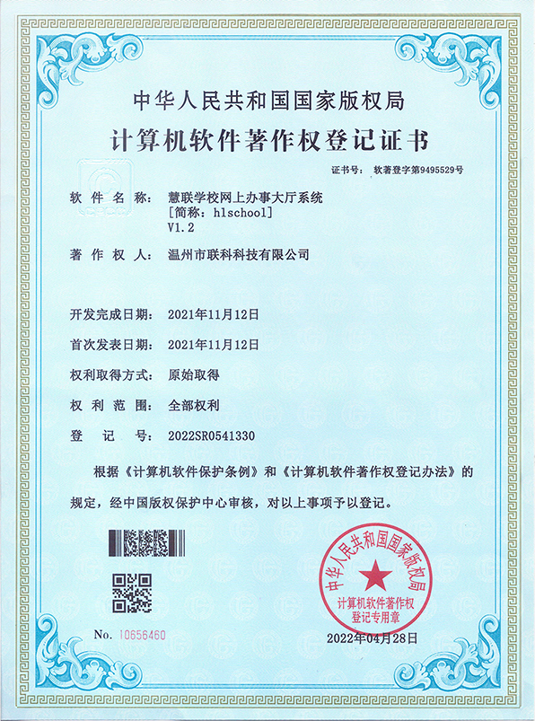 聯科教培行業智慧運營系統V1.0登記證書(2022R11L2324133)
