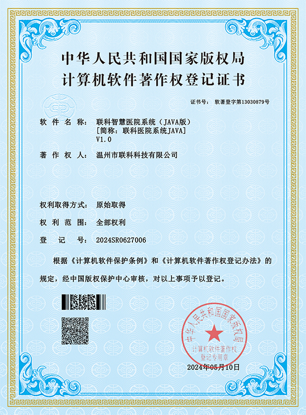 聯科智慧醫院系統(JAVA版)V1.0(2024SRO627006)