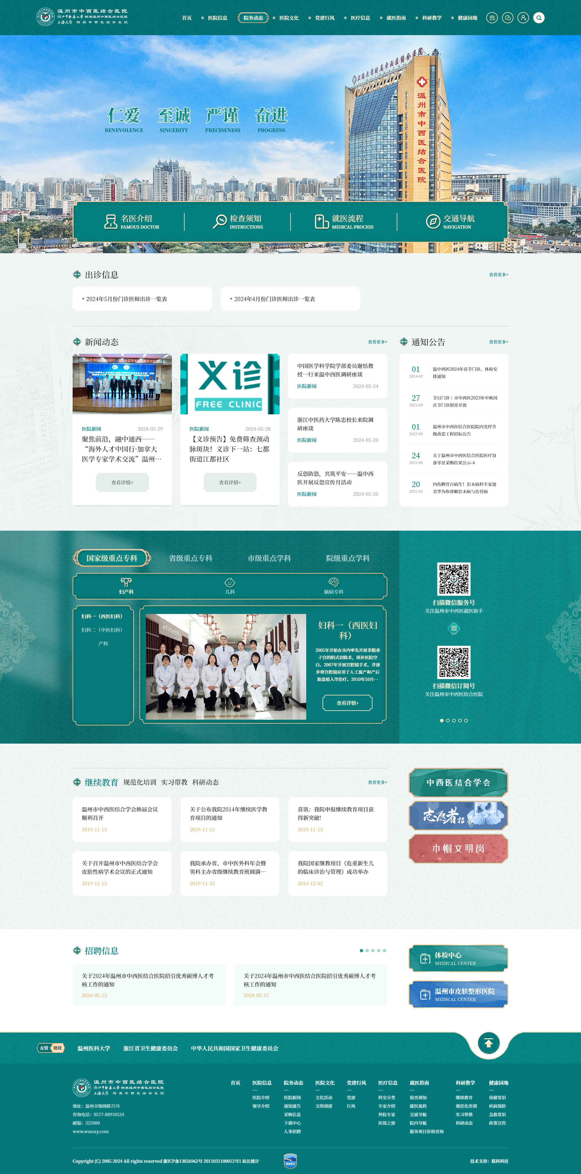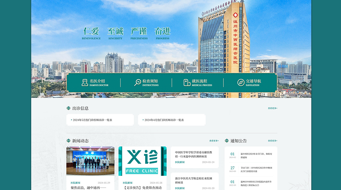 溫州市中西醫結合醫院(浙江中醫藥大學附屬溫州中西醫結合醫院、上海大學附屬中西醫結合醫院)成立于1958年,由溫州市區醫屆同仁攜手合作,組成溫州市中西醫結合醫院的前身溫州市聯合醫院,此后歷經“溫州市康樂醫院”、“溫州市東風醫院”,于1987年更名為“溫州市中西醫結合醫院”。建院以來,醫院一直秉承“名醫立院”的宗旨,深得廣大市民信賴,如今已發展為集醫療、科研、教學、預防、保健、康復于一體的唯一一所市屬公立國家三級甲等中西醫結合醫院。近年來,先后獲得聯合國教科文組織“愛嬰醫院”稱號,全國中醫藥系統創先爭優活動先