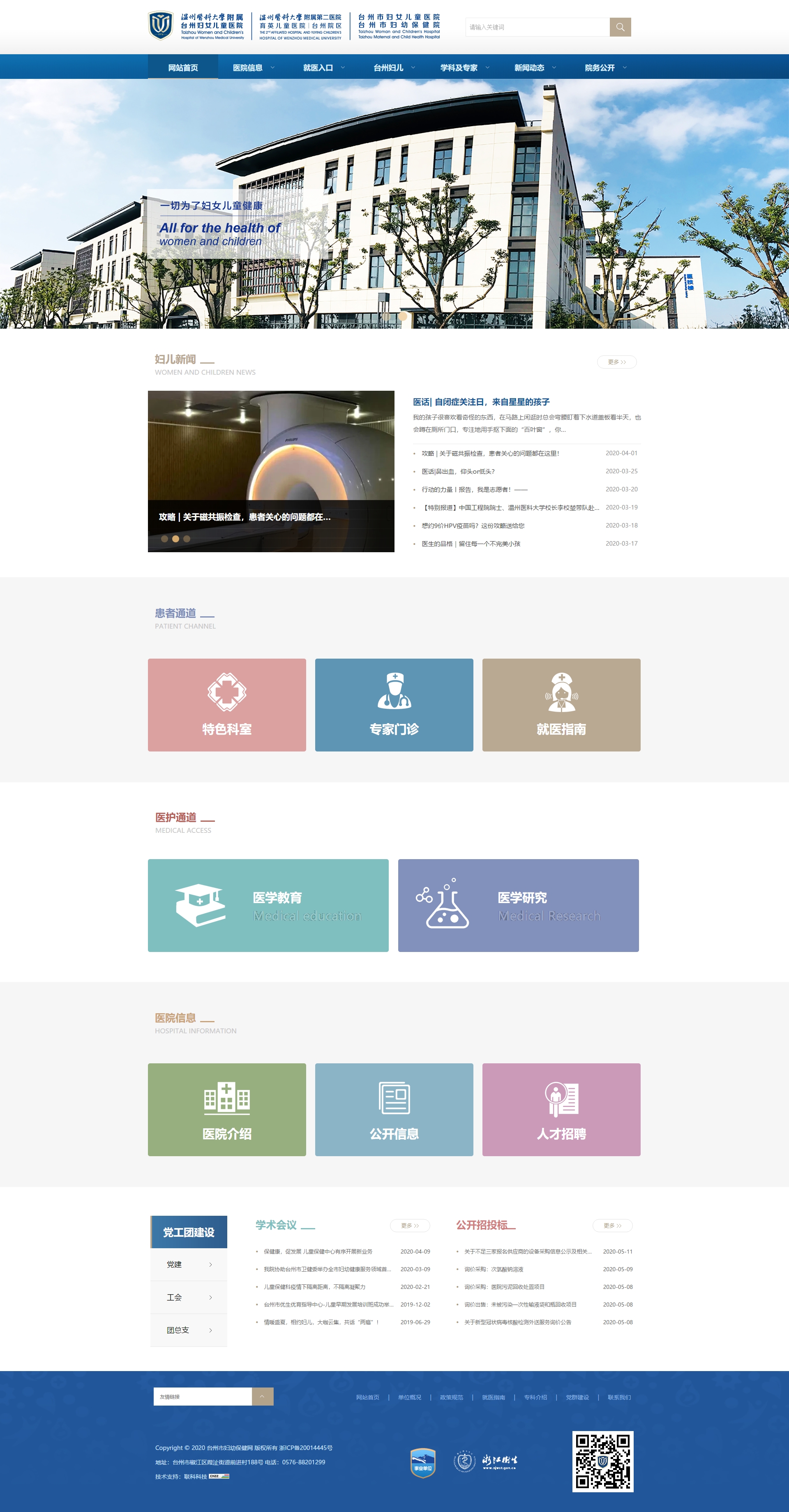 溫州醫科大學附屬臺州婦女兒童醫院前身為臺州市婦幼保健院,始建于1976年。2016年5月,臺州市人民政府與溫州醫科大學達成戰略協議,授權臺州市衛計委與溫州醫科大學附屬第二醫院、育英兒童醫院正式簽約,合作共建溫州醫科大學附屬臺州婦女兒童醫院,又稱溫州醫科大學附屬第二醫院、育英兒童醫院臺州院區。
