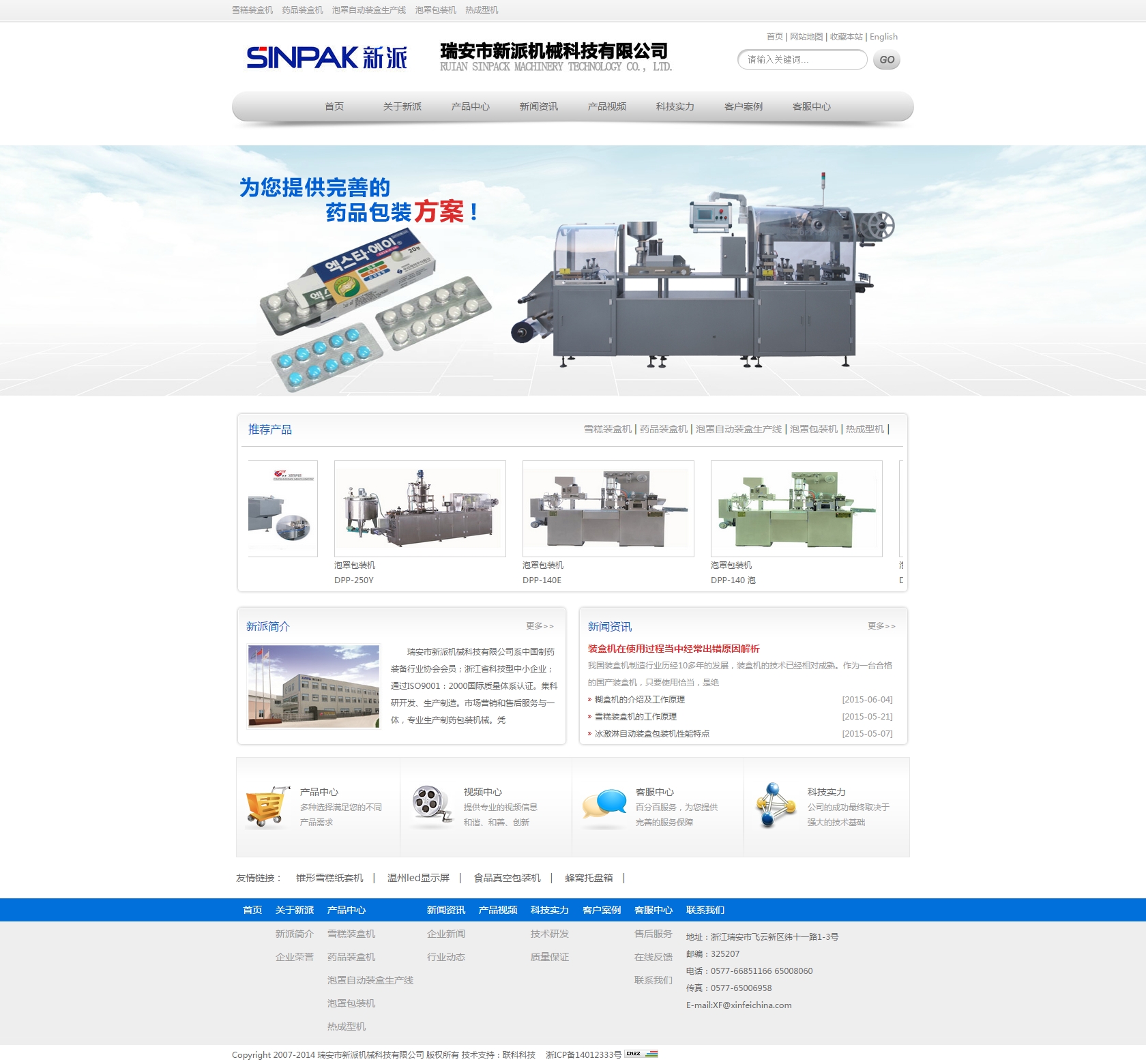 瑞安市新派機械科技有限公司系中國制藥裝備行業協會會員;浙江省科技型中小企業;通過ISO9001:2000國際質量體系認證。集科研開發、生產制造。市場營銷和售后服務與一體,專業生產食品、日化行業的泡罩包裝機和裝盒機械。憑借雄厚的技術力量;精良的制造加工設備;完善的檢測手段及健全的管理體系,精心為客戶技術先進優良并符合GMP要求的產品。