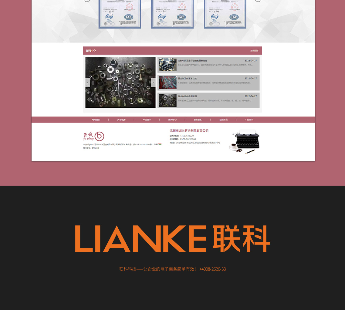 溫州市誠琳五金制品有限公司創辦于2008年,前身為巨誠標準件廠。主營擋圈,螺母,六角頭螺栓,內六角螺釘,圓柱銷等產品。在發展過程中我們推崇的是“誠信”和“專業”,唯有誠信才能立足,唯有專業才能競爭。有專業的技術人員,優良的服務質量,完善的售后服務,根據不同客戶的需求,盡可能的聽過全方位的服務內容,在客戶心中樹立起良好的公司形象。