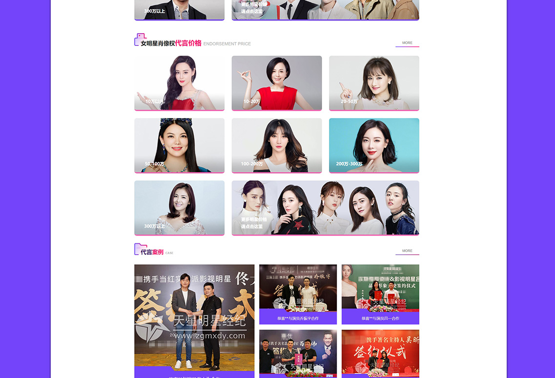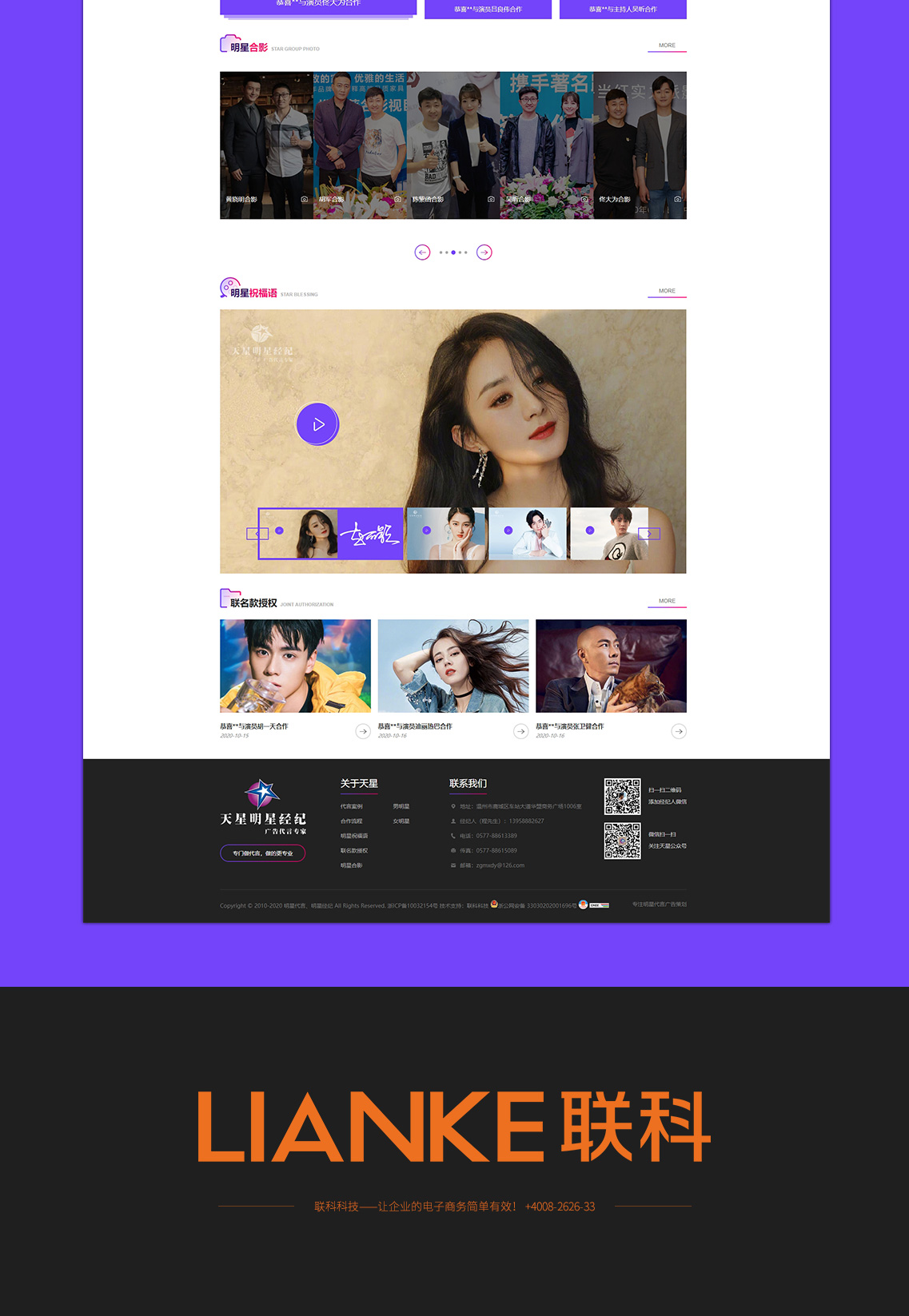 天星明星經紀,是一家為企業請明星做代言、明星經紀代理、活動嘉賓演出、平面及影視廣告拍攝制作于一體的專業性娛樂傳媒機構。經過多年的努力, 公司憑借著多年豐富的從業經驗和具有專業操作模式的團隊,通過深入有效的溝通,為企業和明星藝人搭建起良好的合作平臺。