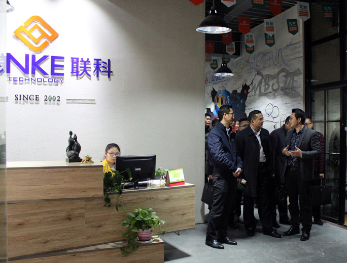 2015年12月30日下午,溫州市商務局(網絡經濟局)局長陳向東局長及同行區委領導蒞臨我公司——溫州市聯科科技有限公司參觀交流。公司董事長鄭祥富向來賓簡要介紹了公司的發展歷程、研發規模和人員配置等概況。