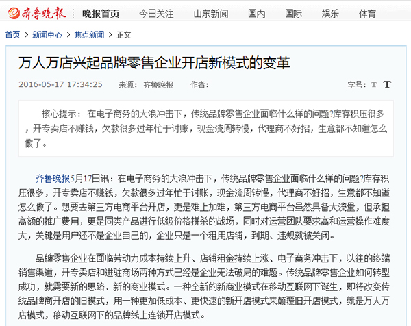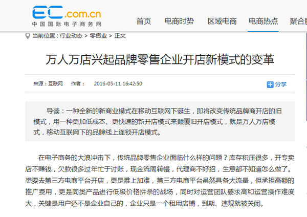 火爆的互聯網商業模式是什么?當然是萬人萬店商業模式,萬人萬店商業模式自面世以來,掀起 了一股在移動互聯網上開連鎖店的新風潮,各大門戶網站紛紛對萬人萬店模式進行了報道。