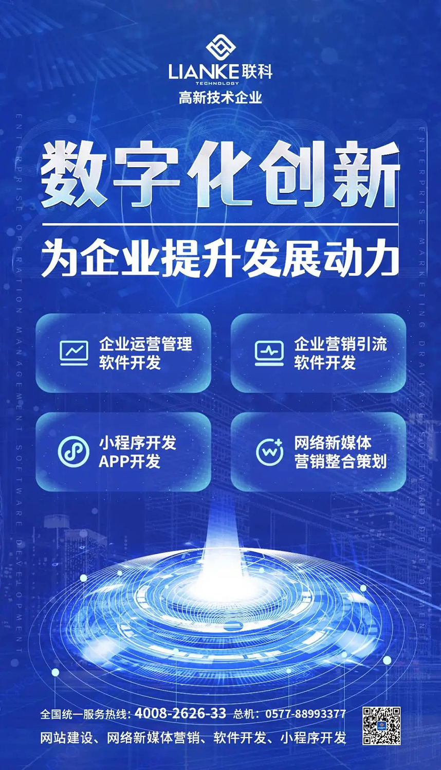 溫州市聯(lián)科科技有限公司成立于2002年,主要從事互聯(lián)網(wǎng)應(yīng)用軟件開(kāi)發(fā)和網(wǎng)絡(luò)營(yíng)銷策劃推廣,業(yè)務(wù)包括網(wǎng)站開(kāi)發(fā)、小程序開(kāi)發(fā)、APP開(kāi)發(fā)、新媒體(微信、抖音、百度)整合營(yíng)銷策劃、外貿(mào)推廣等。產(chǎn)品包括品牌定制型網(wǎng)站系統(tǒng)、四網(wǎng)合一自適應(yīng)網(wǎng)站系統(tǒng)、智立方全網(wǎng)營(yíng)銷系統(tǒng)、智慧醫(yī)院網(wǎng)站系統(tǒng)、學(xué)校網(wǎng)上辦事大廳系統(tǒng)、在線教育培訓(xùn)系統(tǒng)、迎客精靈小程序商城系統(tǒng)、智慧教培門店運(yùn)營(yíng)系統(tǒng)等。