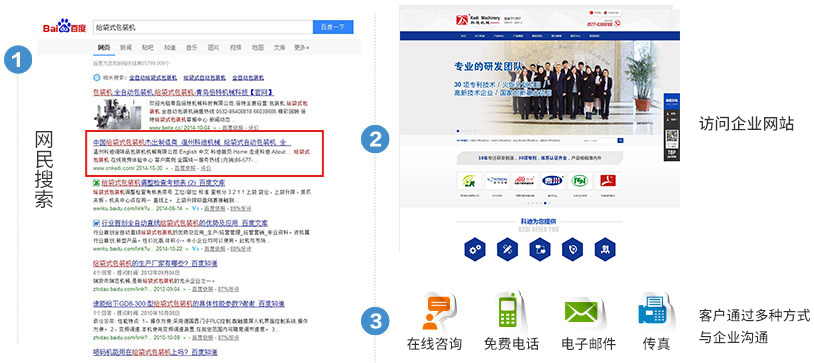 我們通過研究百度、360等搜索引擎的排名規則,然后通過對網站優化調整、網站外鏈建設、網站內容建設等方法,提升網站排名,使我們的潛在客戶在百度等搜索引擎上搜索產品關鍵詞時,我們的網站顯示在搜索結果的首頁。