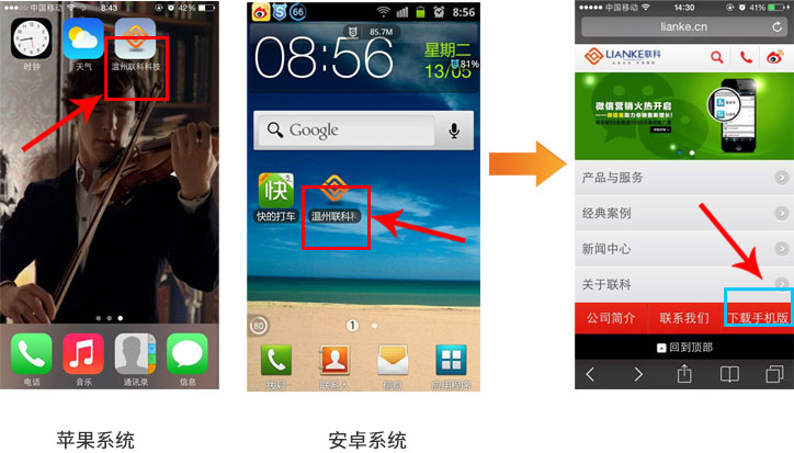 用戶通過下載手機網站APP和圖標,安裝在手機桌面上,即可快速訪問手機網站。