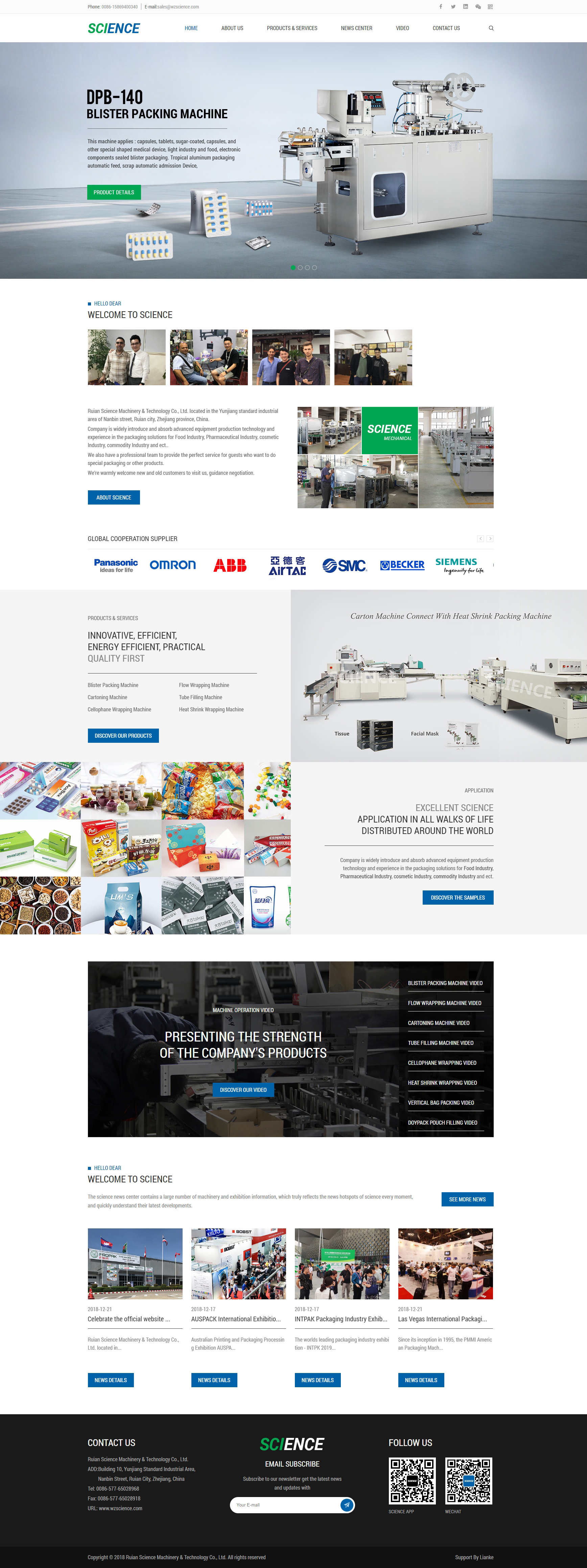 RUIAN SCIENCE MACHINERY & TECHNOLOGY CO., LTD. LOCATED IN THE YUNJIANG STANDARD INDUSTRIAL AREA OF NANBIN STREET, RUIAN CITY, ZHEJIANG PROVINCE, CHINA.COMPANY IS WIDELY INTRODUCE AND ABSORB ADVANCED EQUIPMENT PRODUCTION TECHNOLOGY AND EXPERIENCE IN THE PACKAGING SOLUTIONS FOR FOOD INDUSTRY, PHARMACEUTICAL INDUSTRY, COSMETIC INDUSTRY, COMMODITY INDUSTRY AND ECT..