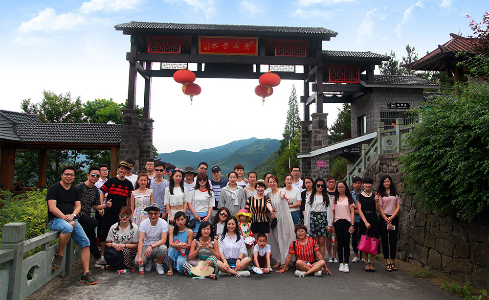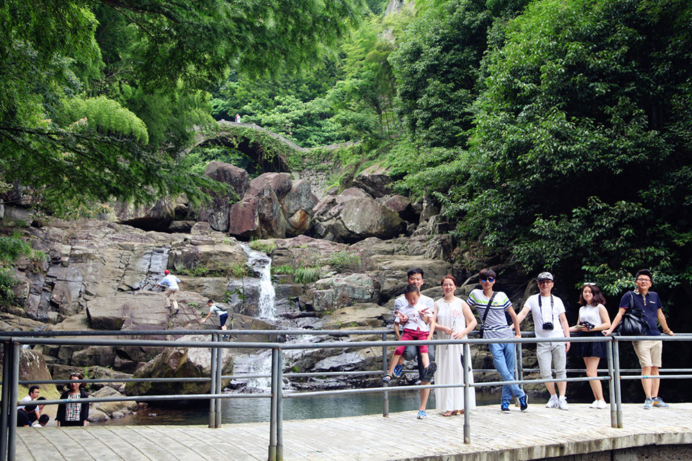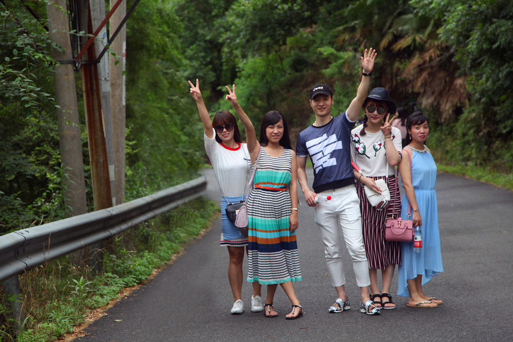 第二日,享受過自助早餐后,全體同事們浩浩蕩蕩的向丹山赤水出發(fā)。丹山赤水四面環(huán)山,滿坡翠竹林木,流泉叮咚,鳥語花香,不但山水秀麗,又原始古樸。