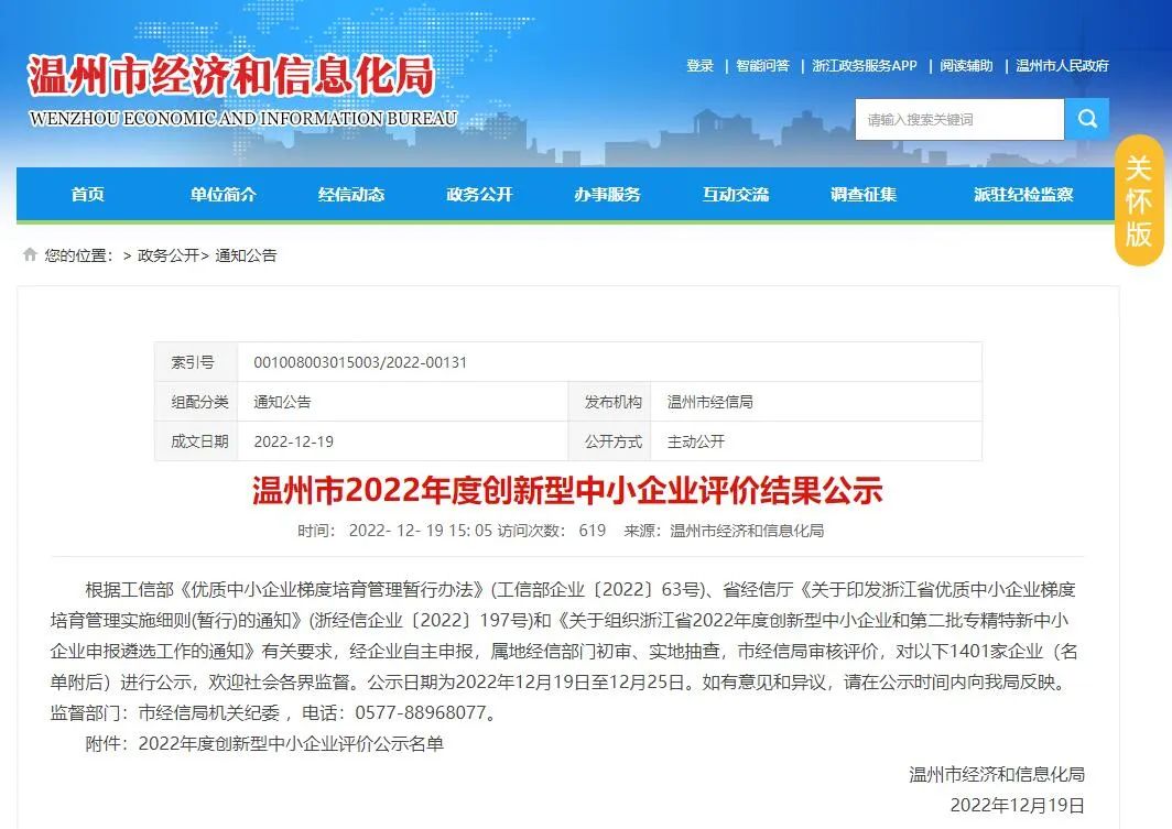 根據(jù)溫州市經(jīng)濟(jì)和信息化局于2022年12月19日發(fā)布的《溫州市2022年度創(chuàng)新型中小企業(yè)評(píng)價(jià)結(jié)果公示》顯示,溫州市聯(lián)科科技有限公司成功入選2022年度溫州市創(chuàng)新型中小企業(yè)名單。