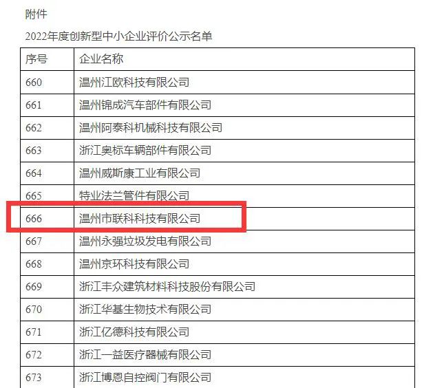 【喜報(bào)】聯(lián)科科技成功入選2022年度溫州市創(chuàng)新型中小企業(yè)名單