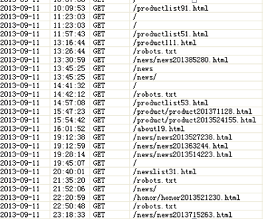 第三,綜合的指導。經常性我們在日志里可以發(fā)現(xiàn)一些返回值不是200的條目,而通過日志的返回值我們就可以很容易地找到,這個頁面,并且對于這個頁面的錯誤或者不足進行修改。而通過對于網站每天日志的對比記錄,我們可以發(fā)現(xiàn),蜘蛛每天來網站的次數(shù)是增加了還是減少了。如果增加了,是一些友好的IP還是不好的IP,這些記錄又是從哪個入口進入的。從而分析出我們在日常的網站SEO工作中,在哪些方面是做得比較好的,哪些方面是不足的。